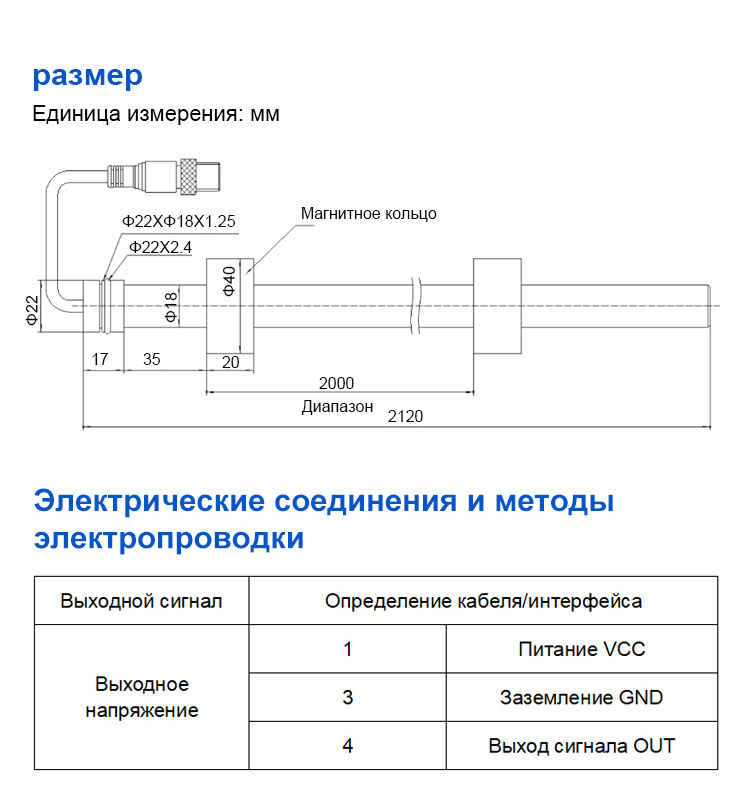 Магнитострикционный датчик смещения точно определяет абсолютное положение подвижного магнитного кольца с помощью внутренней бесконтактной технологии измерения и контроля для измерения фактического значения смещения обнаруживаемого продукта; высокая точность и высокая надежность датчика широко используются в тысячах приложений в реальных случаях WAN.