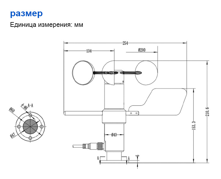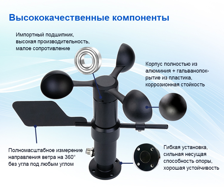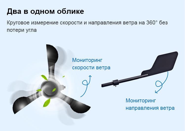 Kруговое измерение скорости и направлениЯ ветра нa 360° бeз