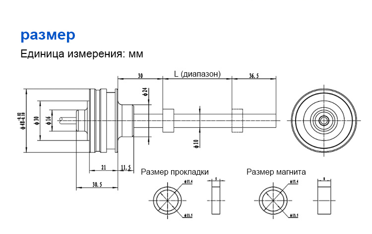 Материал штока | Измерительный шток: нержавеющая сталь 316; электронный отсек: нержавеющая сталь 304 |